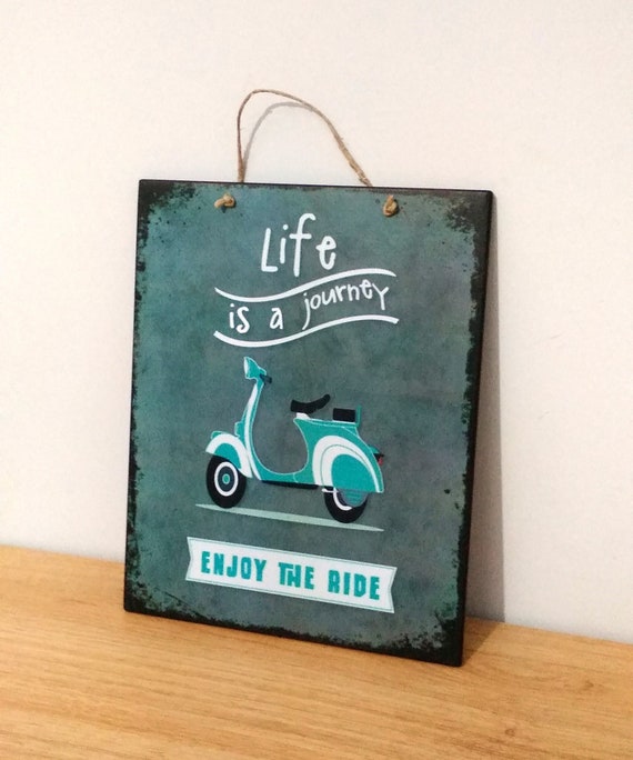 Vespa Wood Sign Life Is A Journey Enjoy The Ride Birthday Etsy